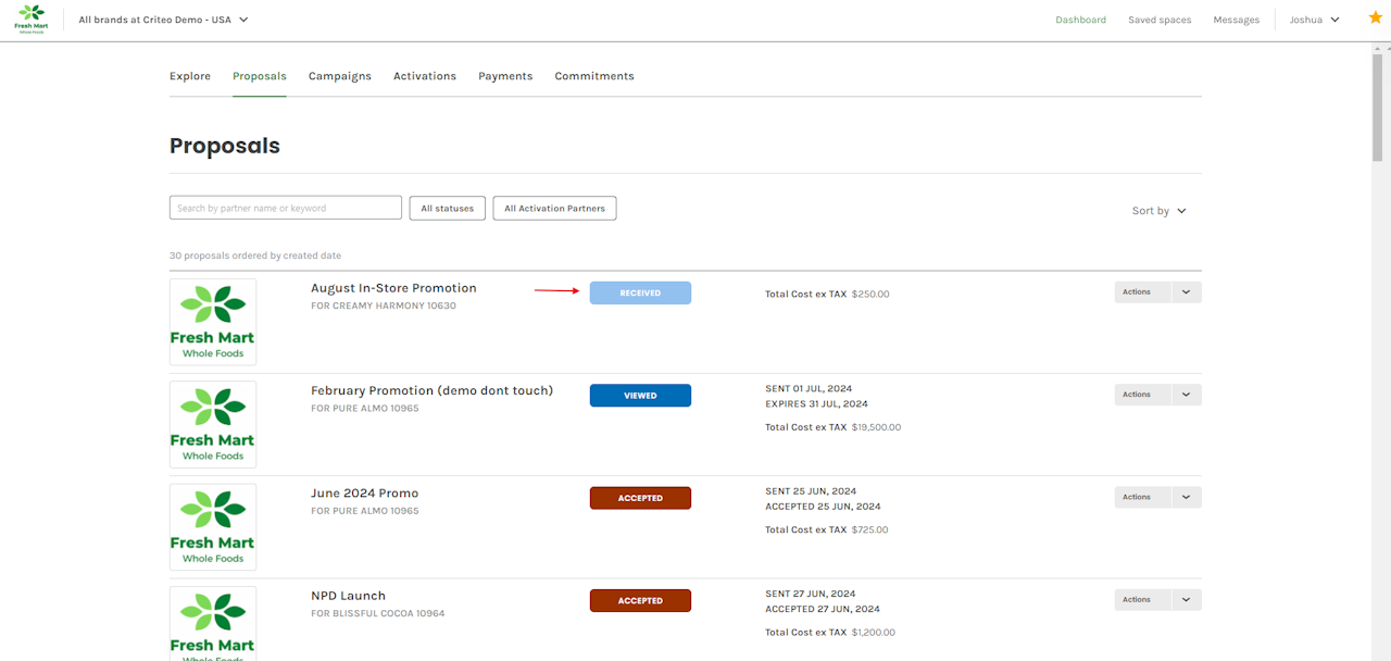 Review and accept a Proposal sent to you from a Media Owner on Criteo.