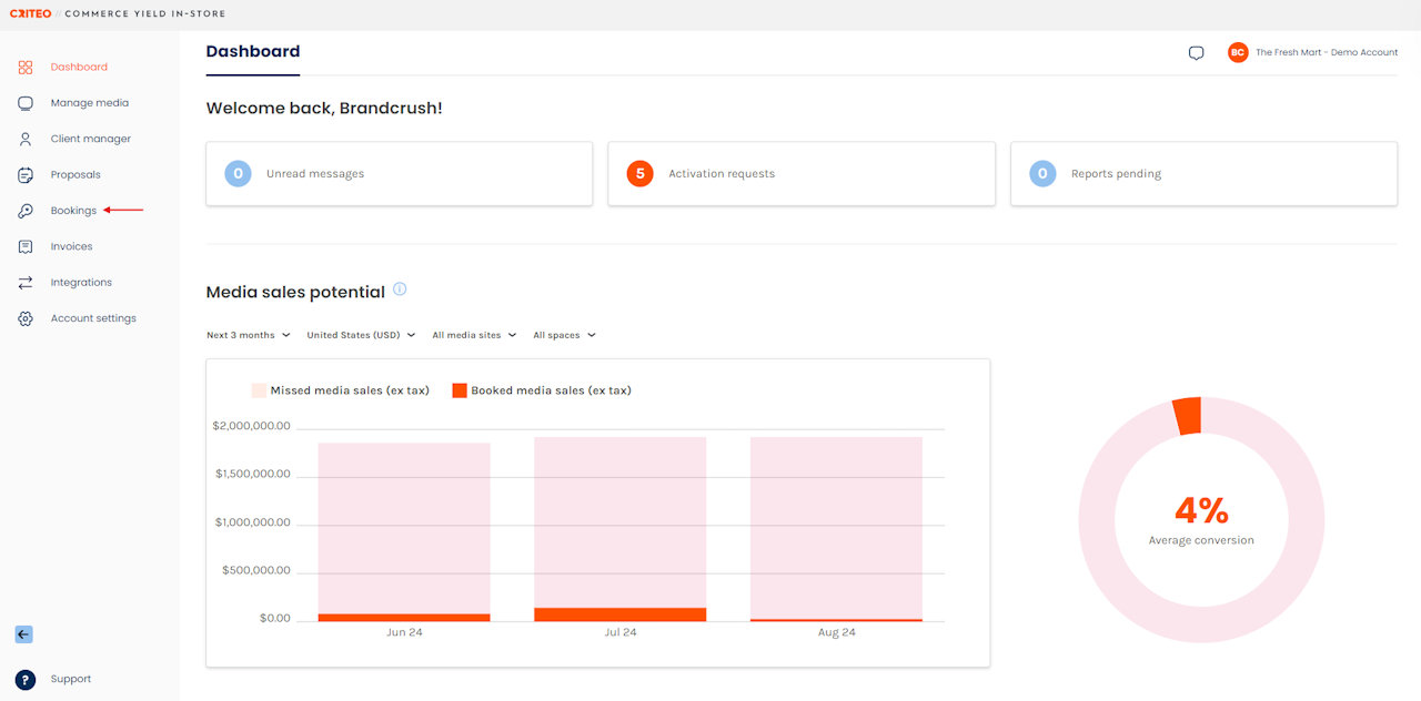 Click on the Bookings tab.