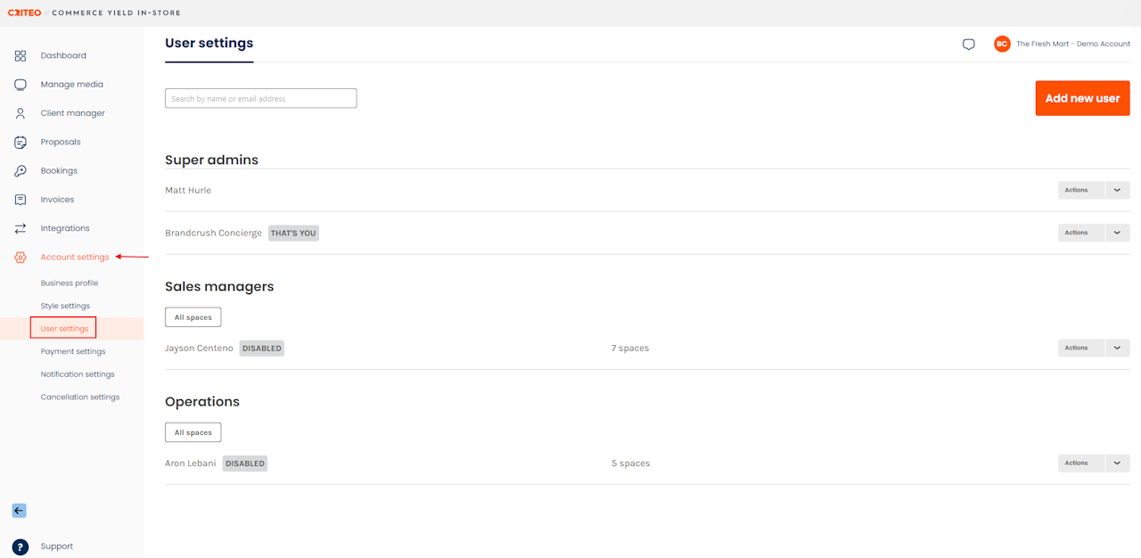 For example, an online retail brand may use "Sales Manager" roles to manage various spaces across different locations.