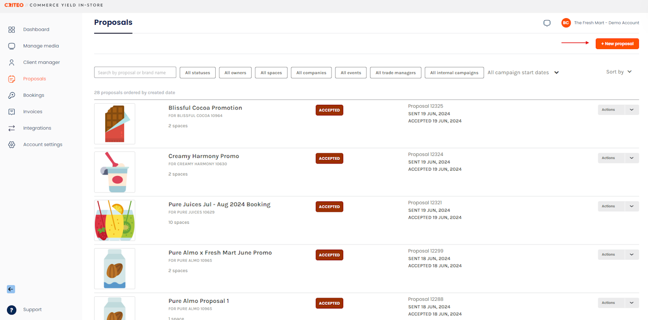 - Create a Proposal by selecting + New Proposal.