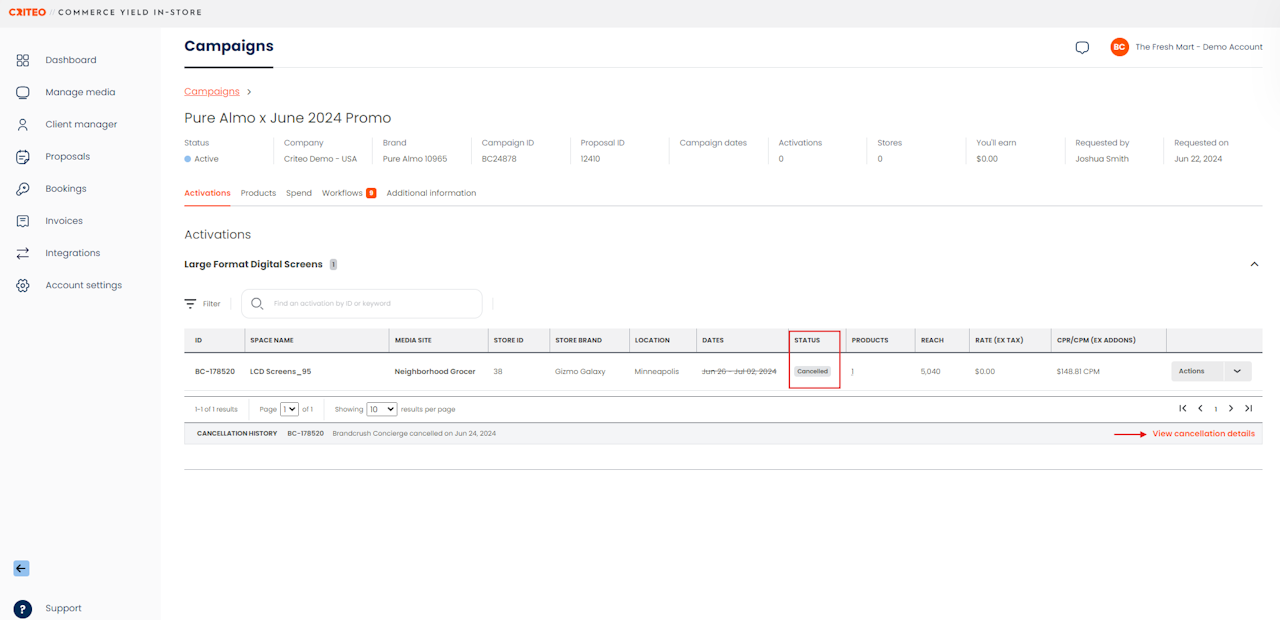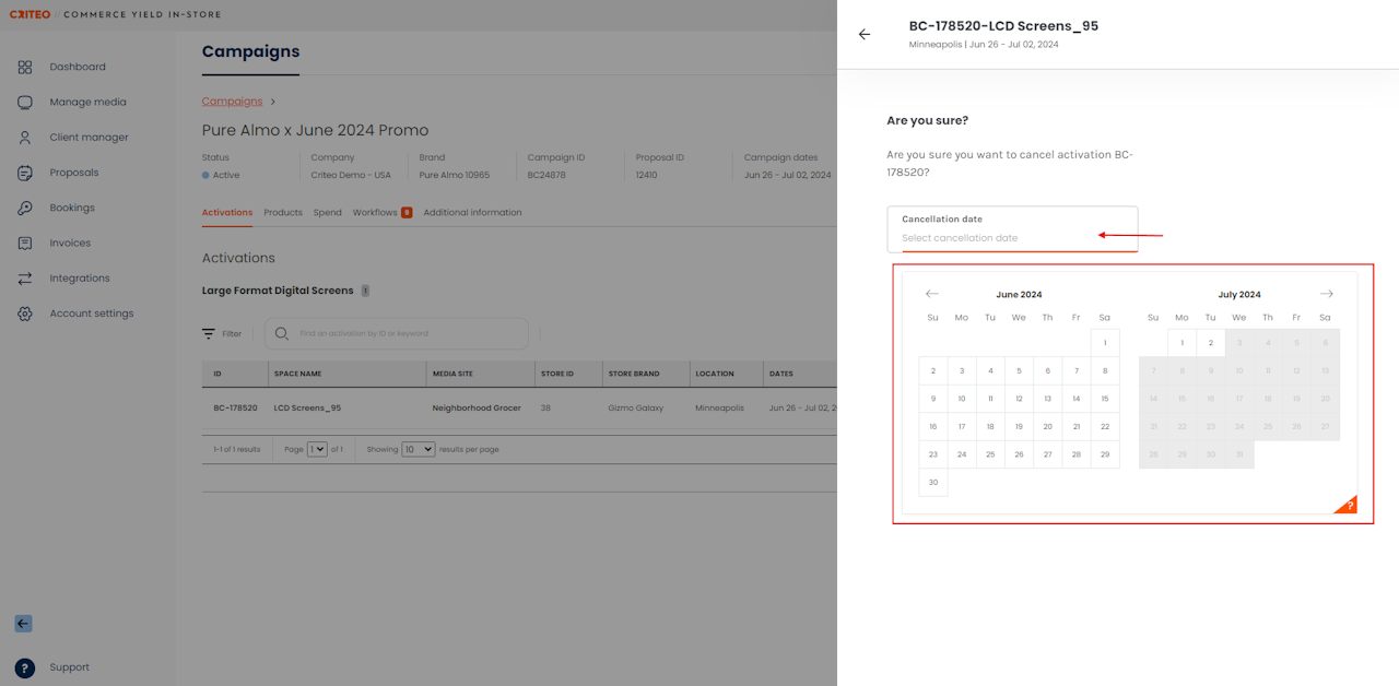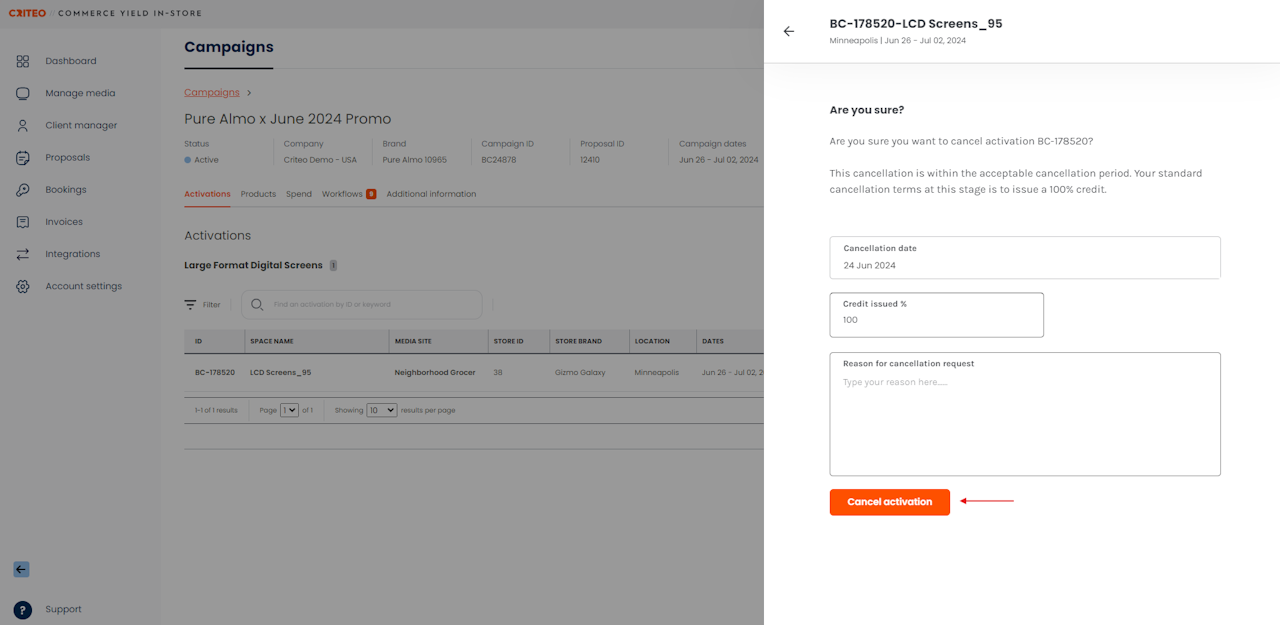 The Media Buyer will be notified via email that their activation has been cancelled and will be given the option to create a new campaign.