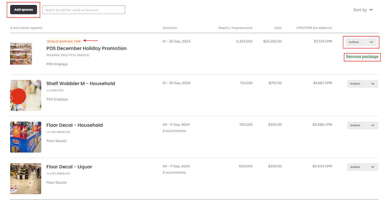 - You also have the option to add more media spaces to your campaign by clicking on the Add spaces button.