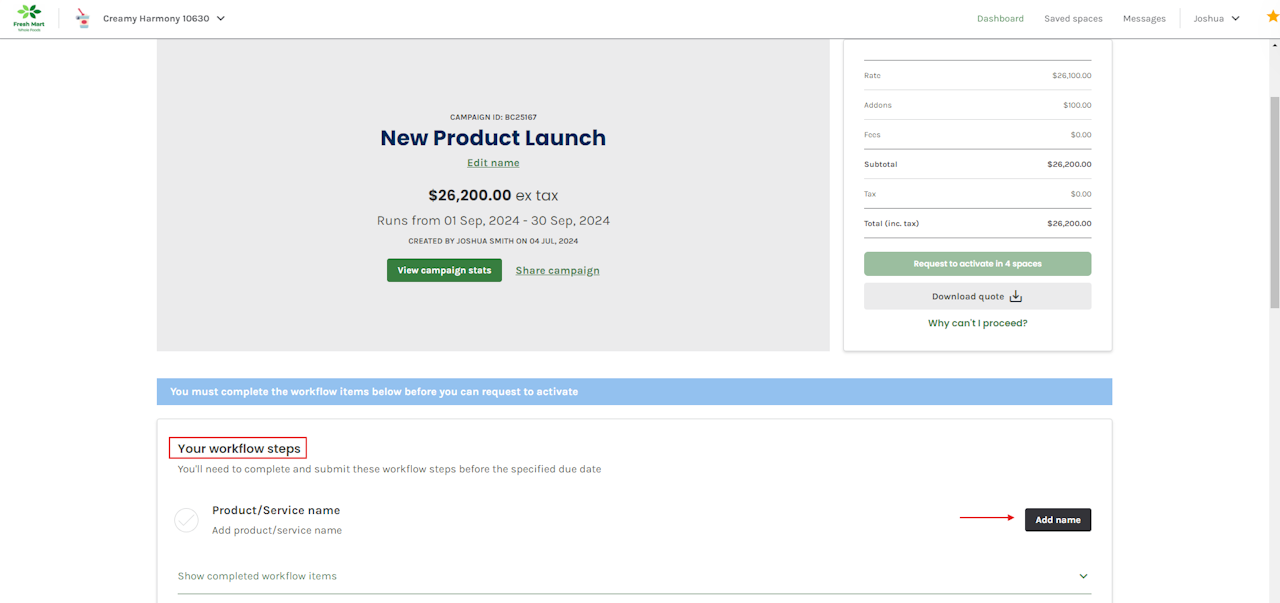 - This is because some Media Owners request workflow steps to be completed before submitting your campaign request. Complete these by scrolling to the Your workflow steps section to complete the requirements.