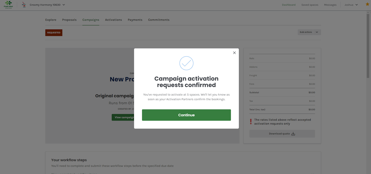 - Click on Confirm booking to send your campaign request to the Media Owner.