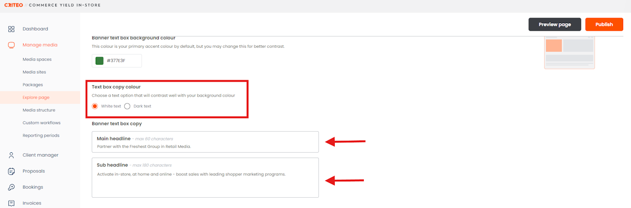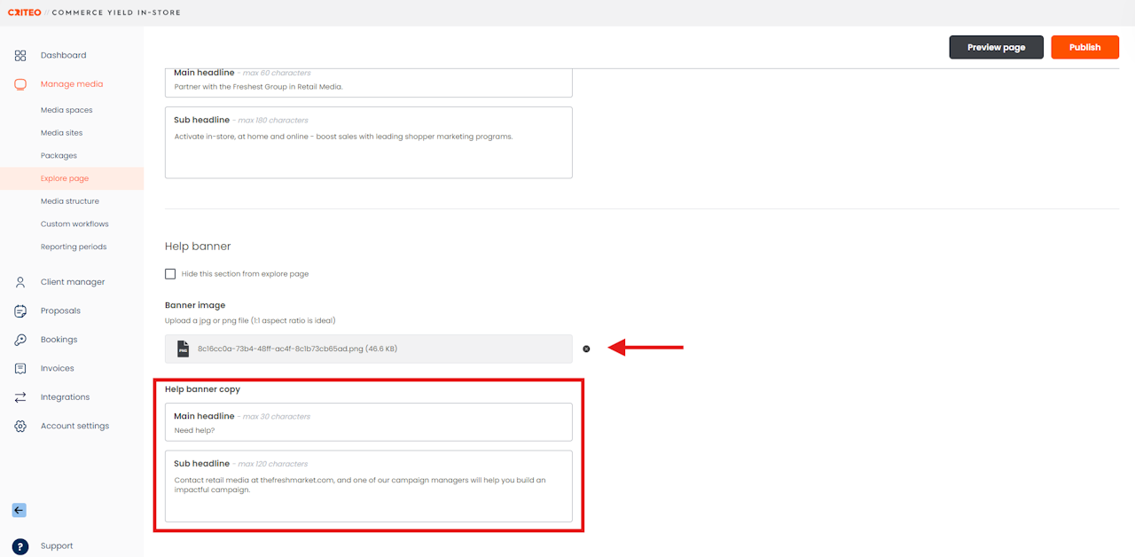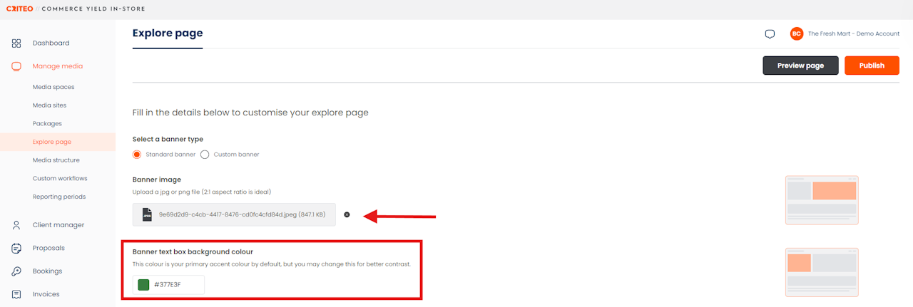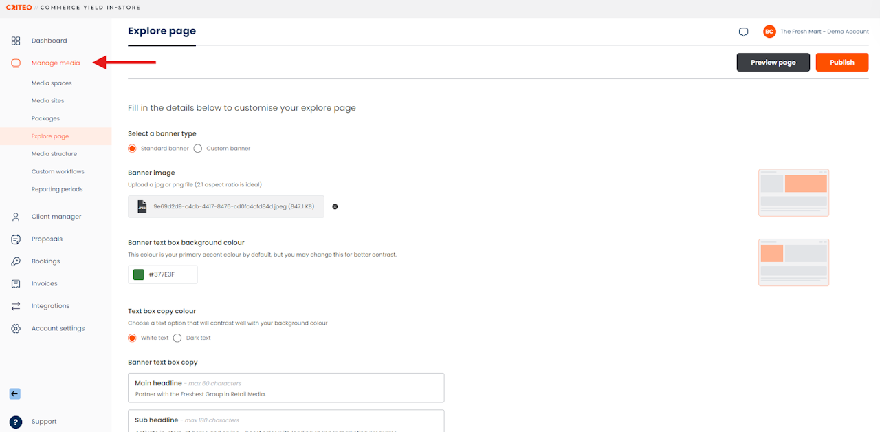 Think of your Explore Page as the home page of your media listings that Media Buyers will first see. You can customize it to make it look and feel like you, like your own shopping website for all your retail media offerings.