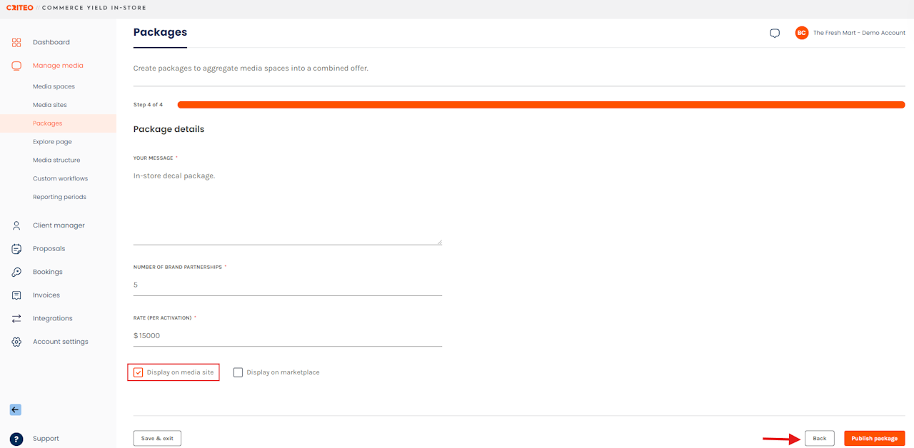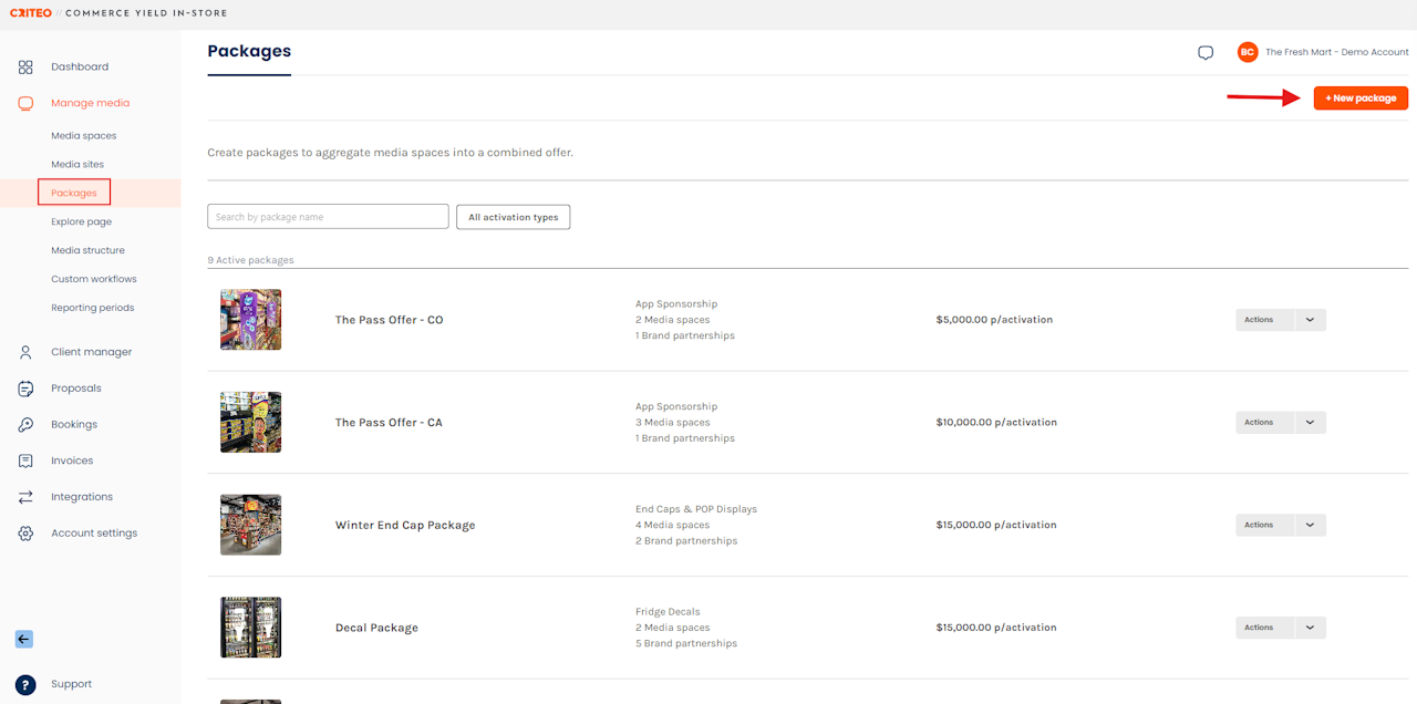 - Once you've created a Package, it will be available as a single media listing.
