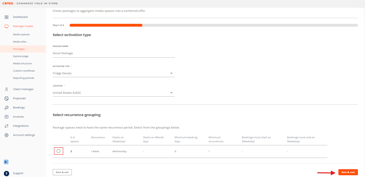 - NOTE: you can only package Media Spaces with the same Activation Type and Recurrence period.