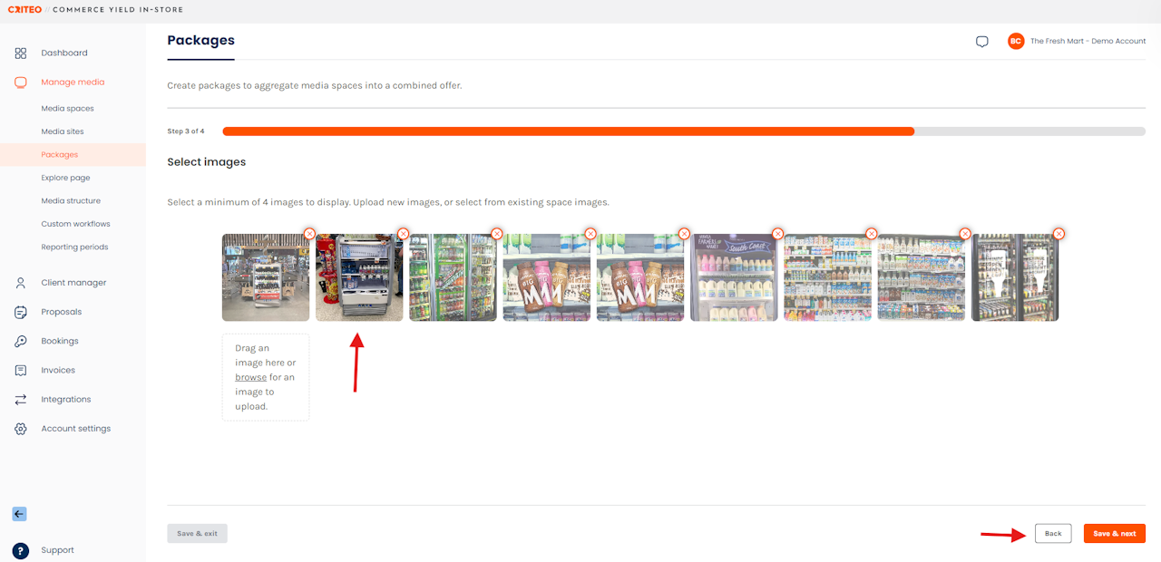 - Choose four images to accompany your Package (images will be an aggregate of the listing images).