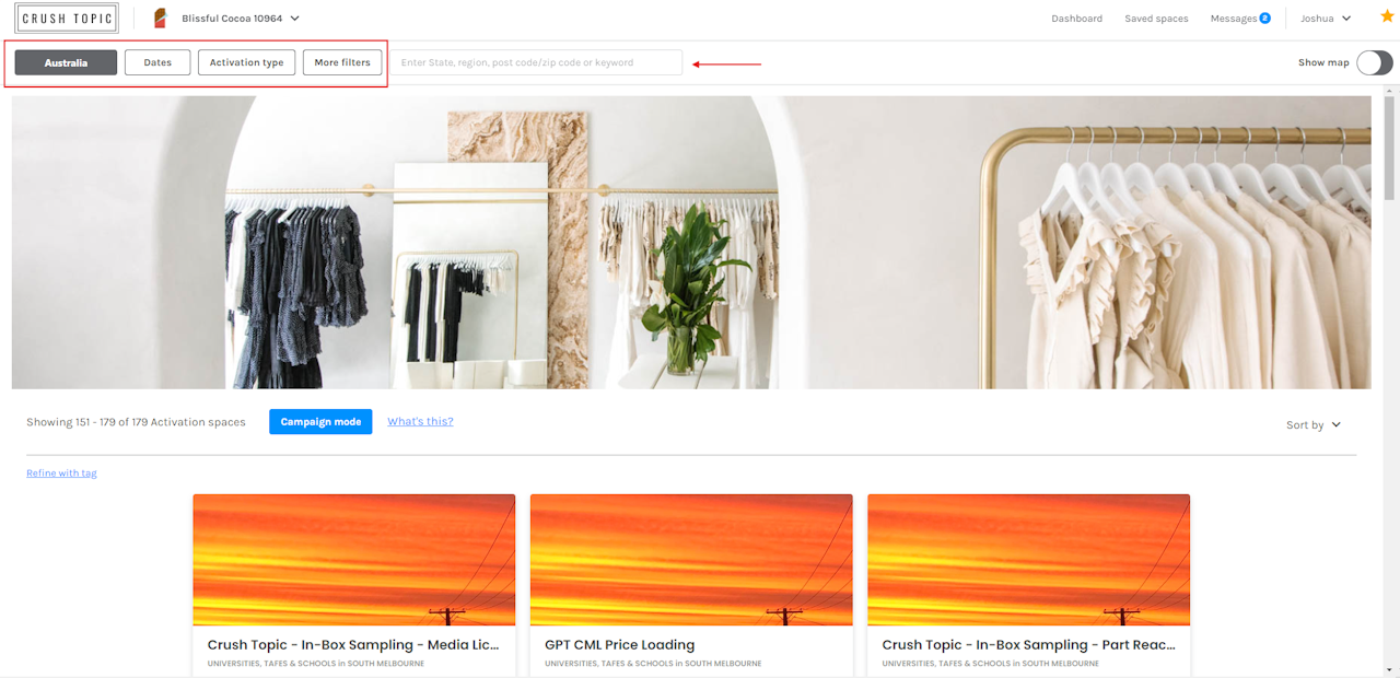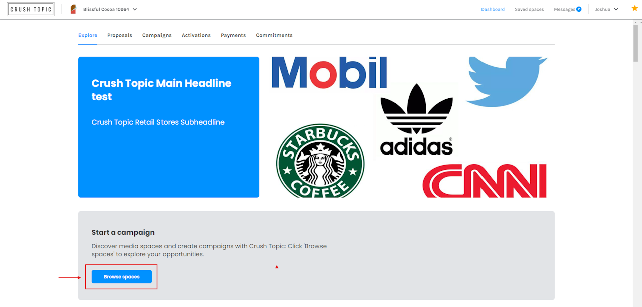 Click on Browse spaces under the Start a campaign section on the Explore page.