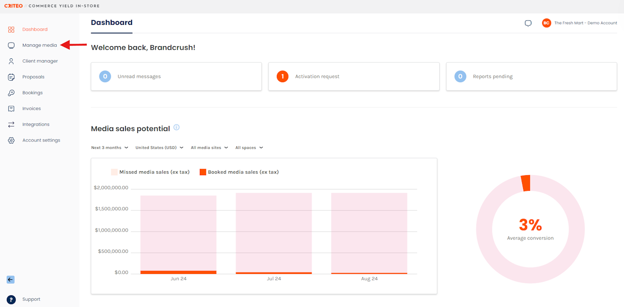 - Click on the Manage media tab.