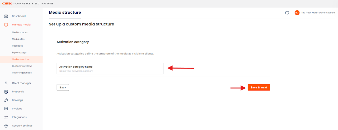 - Title your Activation Category and click Save & next to finalize it.