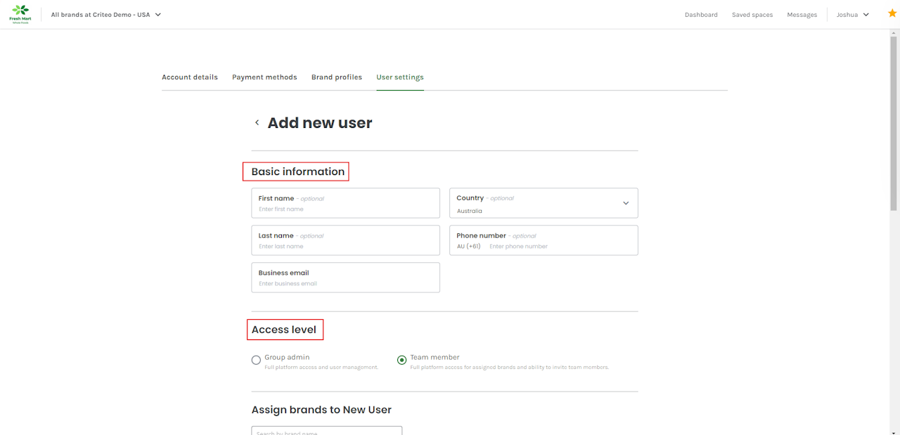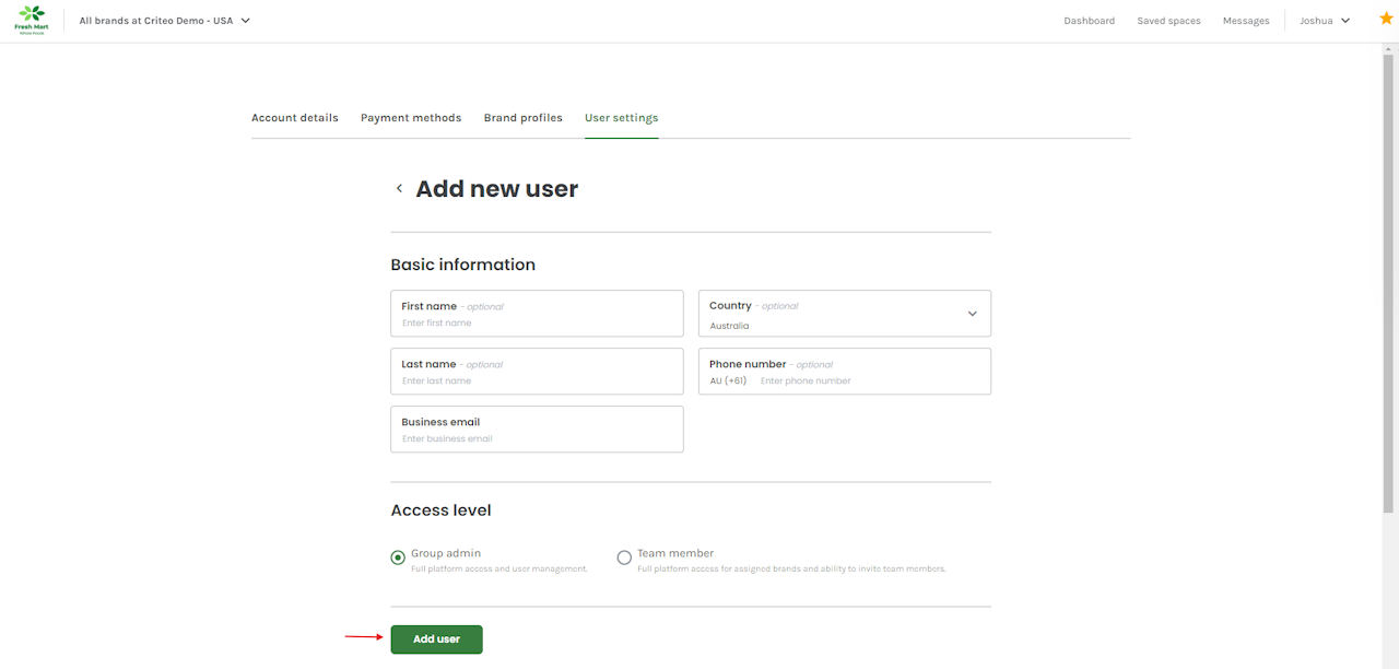Invite team members to your Criteo account to share information, communicate across departments, and manage your media as a team.