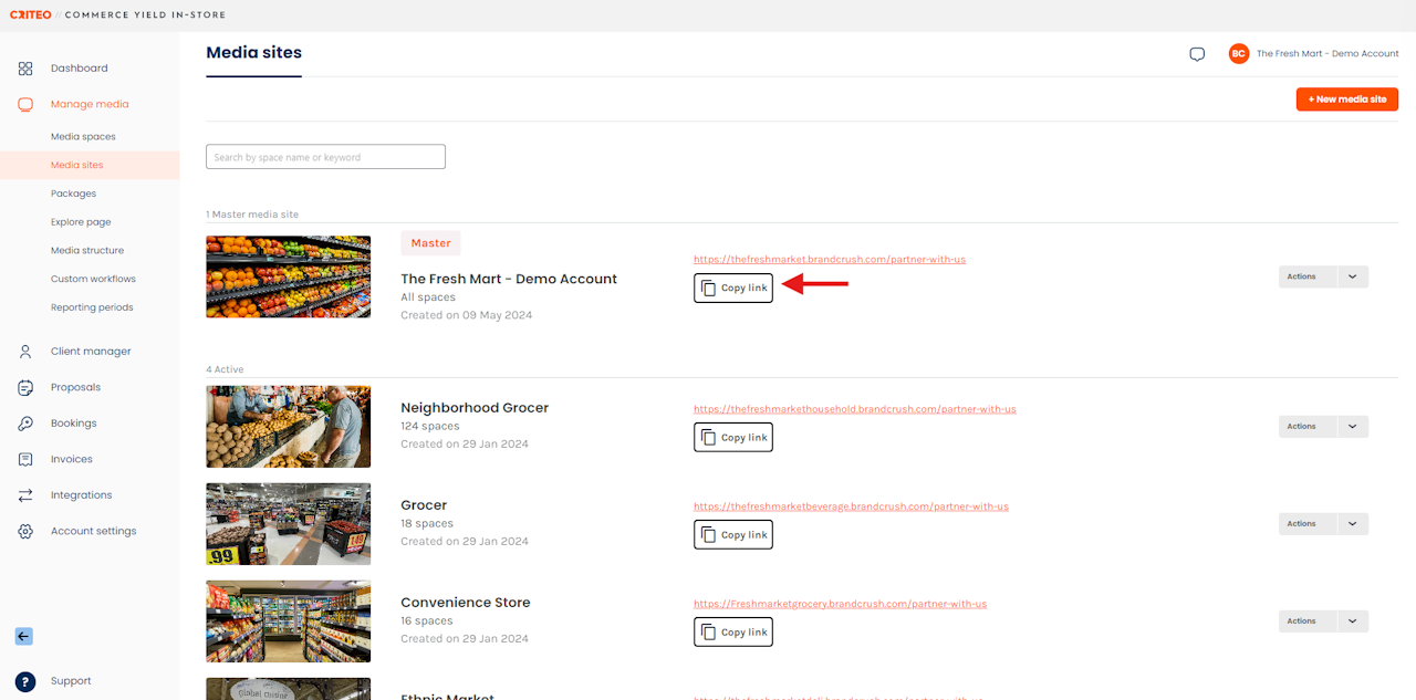 - Copy your Media Site site link and embed it on your website (or you can share it directly with Media Buyers via e-mail or as you please).