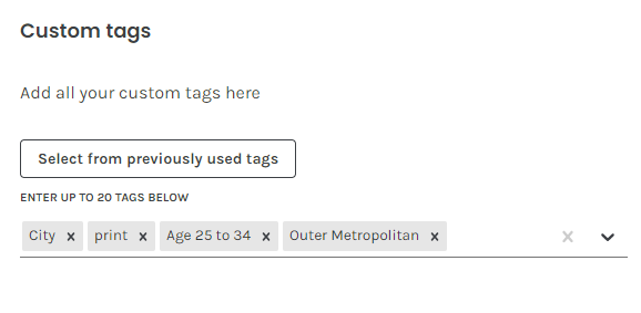 Our tags feature allows you to label your Media Space with up to 20 categorized tags, increasing the visibility and search-ability of these space listings on your Media Site. Prospecting Media Buyers can search for spaces using tags to receive focused results. Tag examples may include: #retail, #grocery, #organic, etc.
