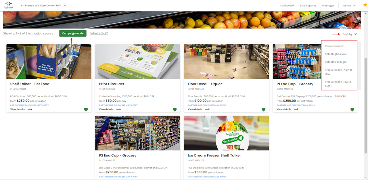 - Click Campaign mode to add your saved spaces to a draft campaign.