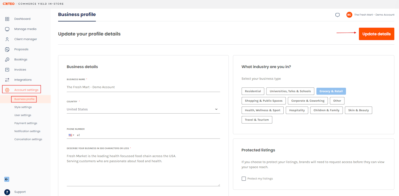 - You can also select to Protect your listings, which means Media Buyers will need to request access before the can view your media space reach.