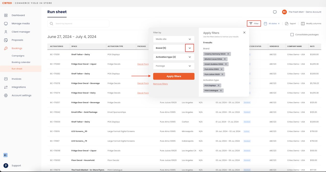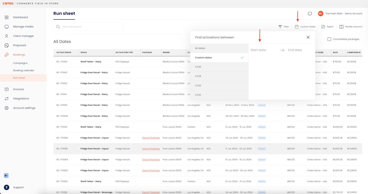 - Show Activations across custom dates or promotional periods by clicking the All dates dropdown menu and selecting a timeframe.
