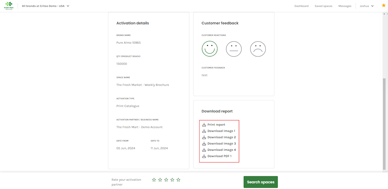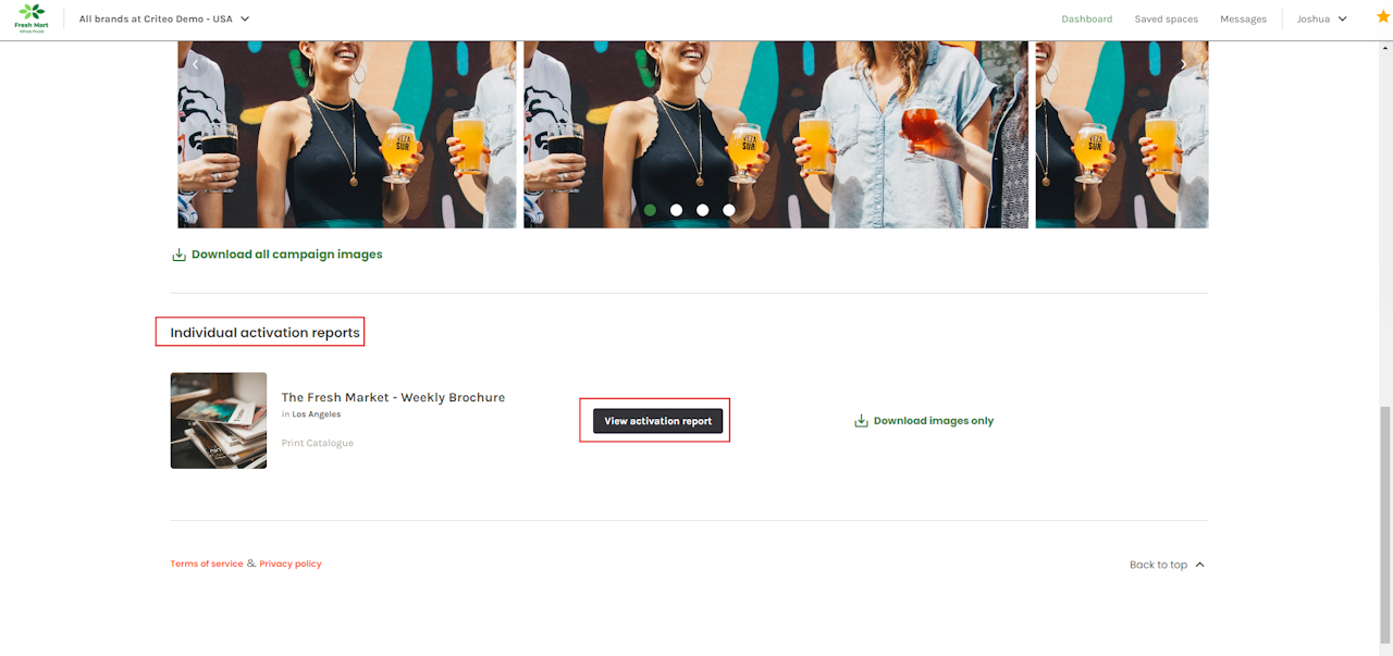 - If the Media Owner has uploaded additional report documentation, it can be accessed by scrolling down to the Individual activation report section and click on the View activation report button.